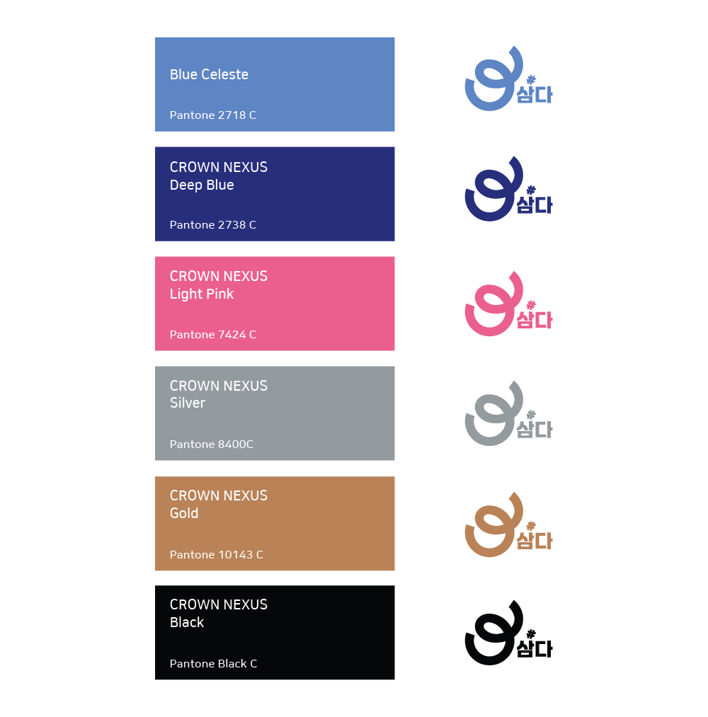 주요색상은 "삼다"의 브랜드 가치를 시각적으로 구현하는 컬러로 적용 시 "삼다" 고유의
