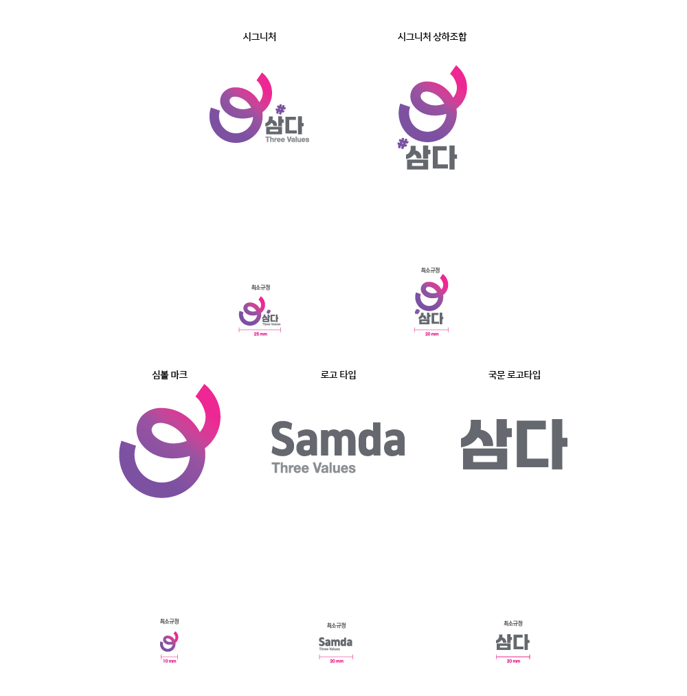 "삼다" 브랜드의 사용은 메뉴얼에 제시된 원칙(비율, 최소규정, 컬러 등)을 지켜 사용함으로써